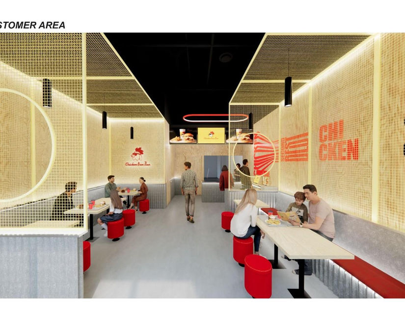 Is an exciting new restaurant concept that celebrates the vibrant flavors of Asian cuisine, with a focus on mouth watering chicken dishes served in a cozy and inviting atmosphere. The design concept embraces a bold color palette of yellow and red, enhanced by dynamic lighting features that illuminate the walls, creating a lively and energetic ambiance. Drawing inspiration from the lively street food culture of Asia, the design concept combines bold colors, playful patterns, and whimsical accents to evoke a sense of fun and excitement.